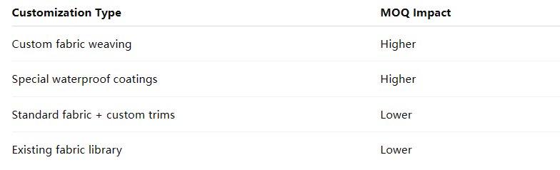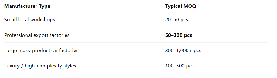 ✅ In-house fabric sourcing + existing material library helps keep MOQ at 50 pcs.