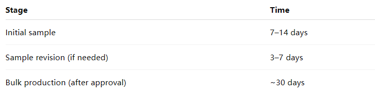 Tip: Clear specs and quick feedback help keep sampling closer to 7 days.