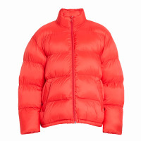 Bold red Puffer Jacket for men – oversized fit, high-neck collar, and ultra-warm insulation. A statement piece for streetwear or winter layering.
